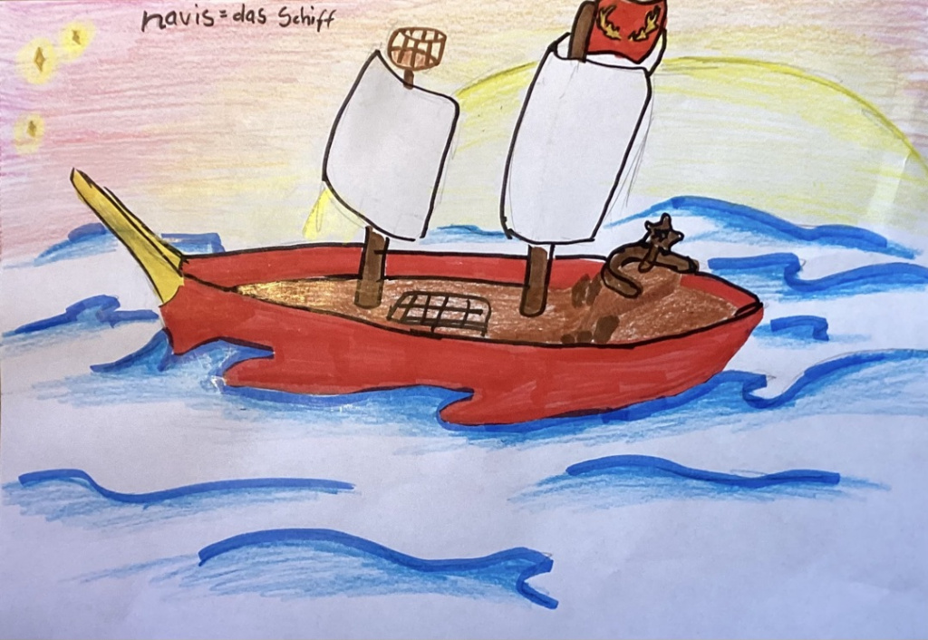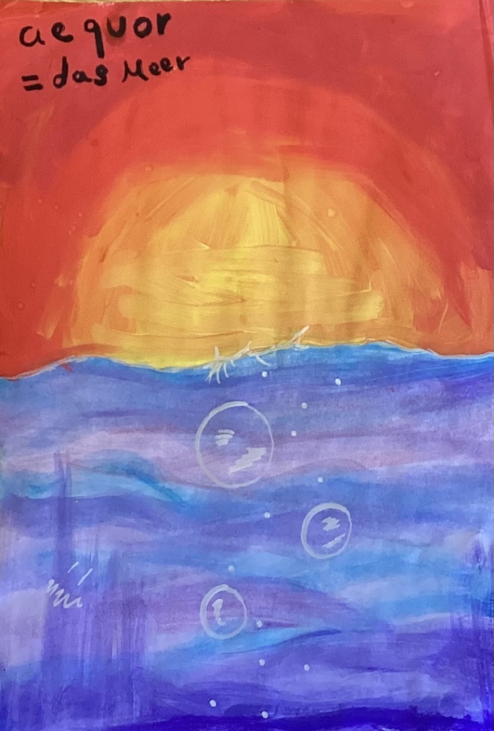 Genau hierbei leisteten die Lateinerinnen und Lateiner der IGS Hamm großartige Unterstützung. Im Rahmen einer Kooperation mit der Universität Göttingen erweiterten sie diese Liste, indem sie zu ausgewählten Vokabeln mit Spaß und Ideenreichtum eigenhändig Zeichnungen anfertigten, Bilder malten, Fotos machten oder mithilfe von KI Bilder generierten und teilweise auch mit eingängigen Beispielsätzen versahen, die ihnen und anderen Lernenden das Einprägen und Verstehen dieser Wörter erleichtern sollen.